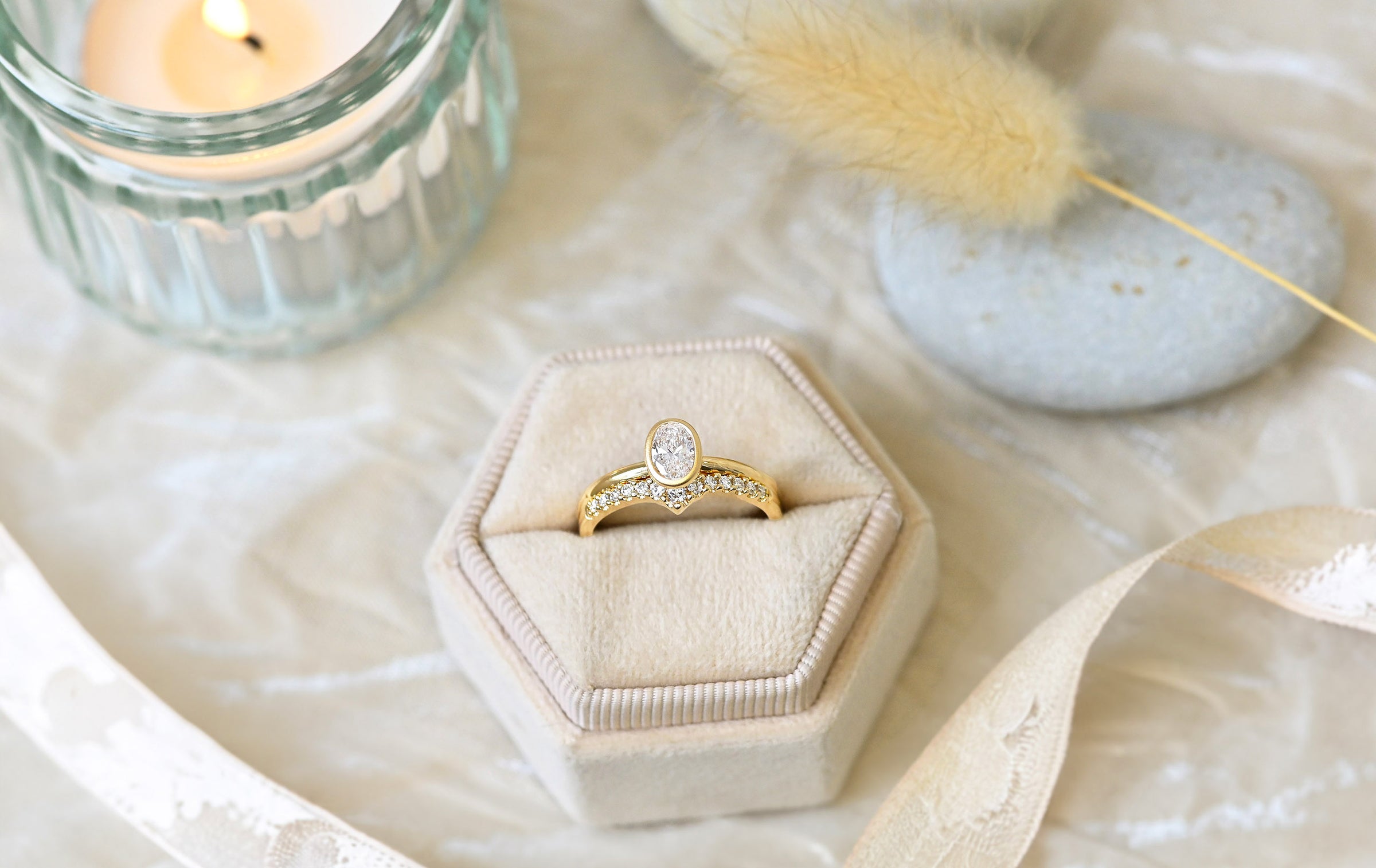 Pientä hienosäätöä jouduttiin kuin jouduttiinkin tekemään sormuksen koon suhteen kotikonstein tehdyistä mittailuista huolimatta – kosijalla taisi täristä sen verran salaisten mittailuoperaation kohdalla kädet, että tähän saattoi tulla hieman liikaa mittaa. Koon pienenäminen hoitui kuitenkin todella mutkattomasti ja tässä asiakaspalvelu oli erittäin avulias.