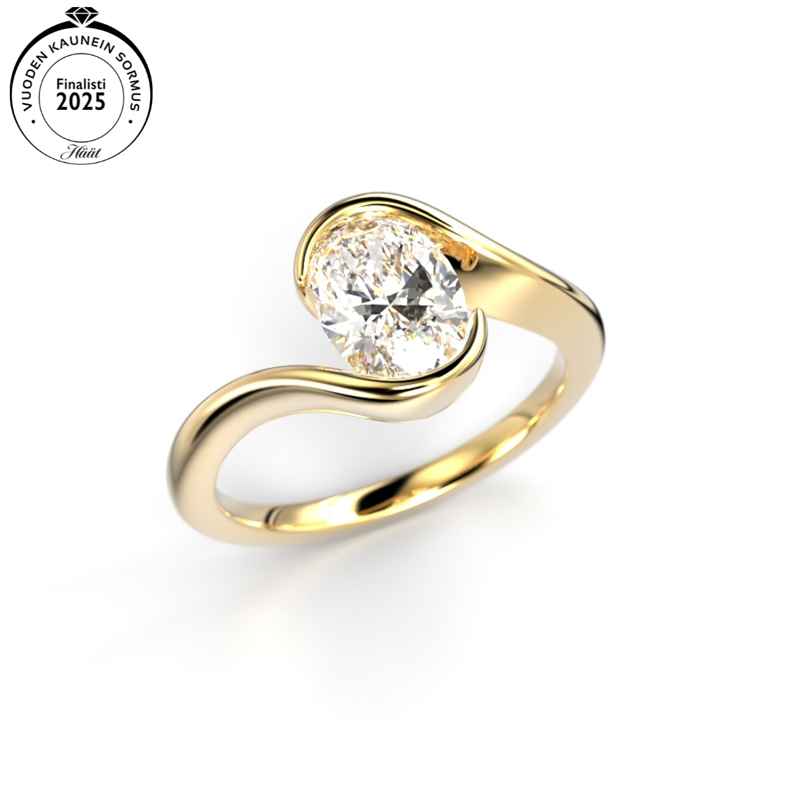 This stylish and modern Festive Selena ring features a stunning oval cut diamond set in four prong crown. With minimalistic style can this ring be worn alone or with another ring.