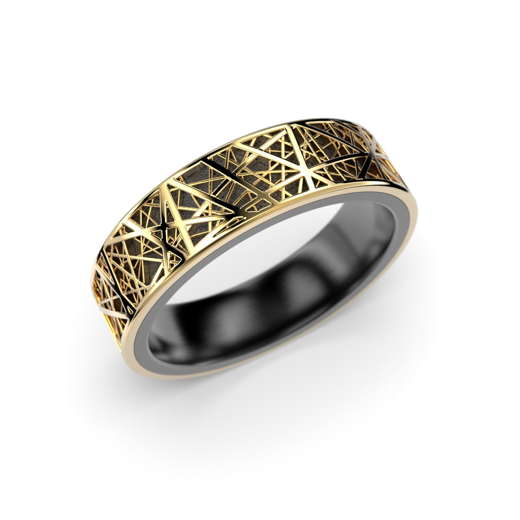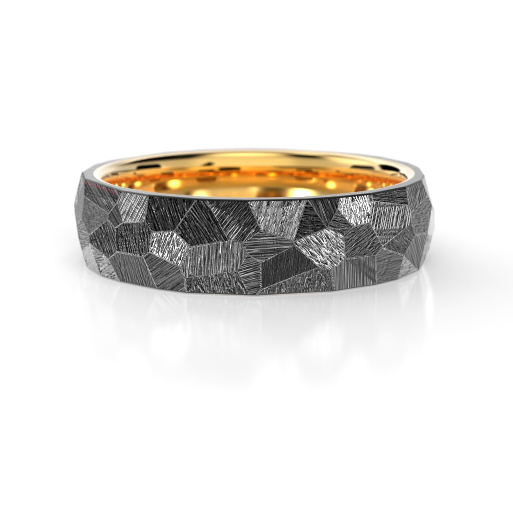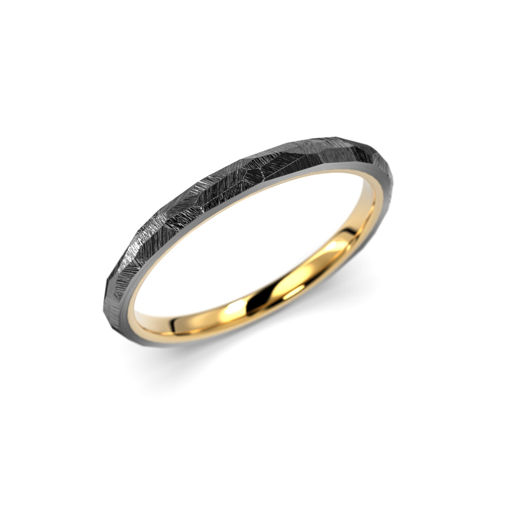 The NOX collection is born from opposites. The deep, dark surface of zirconium and the warm glow of gold meet in one form - separate but inseparable. Two different materials merge into a single whole, each accentuating the other.