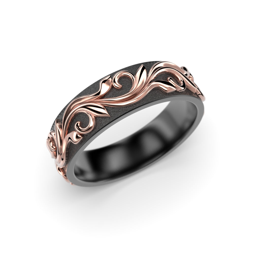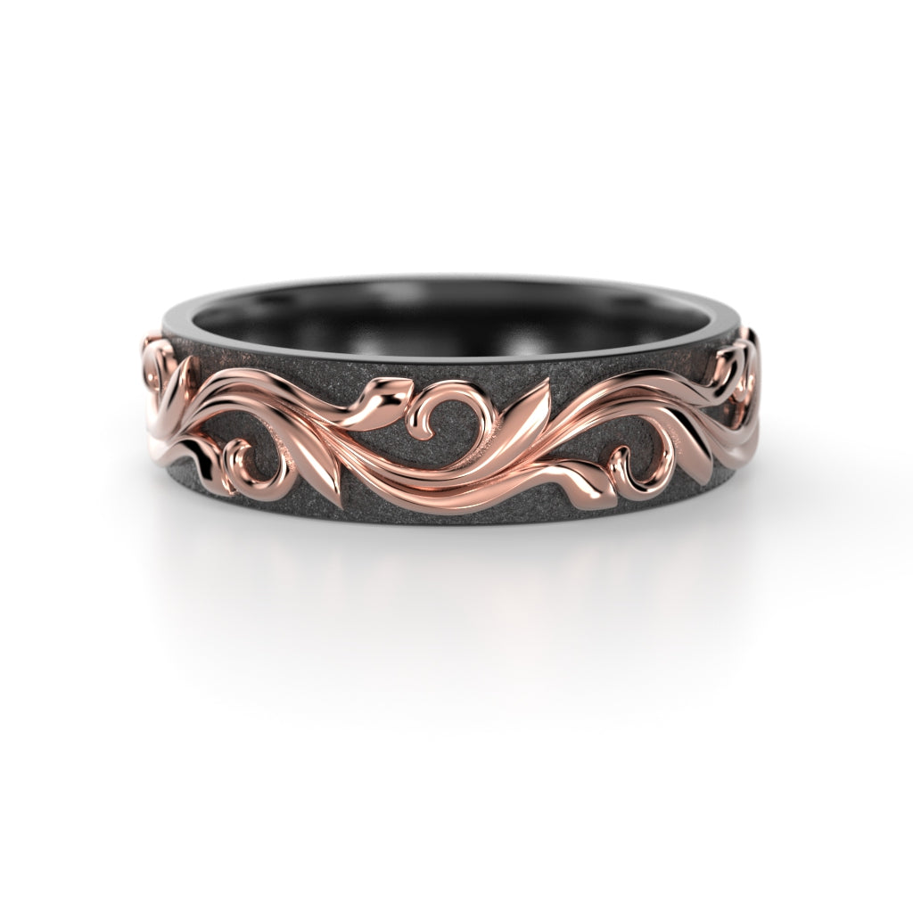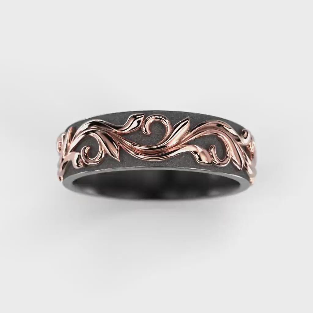 The Feeniks NOX ring is born from opposites. Feeniks draws its inspiration from nature and renewal. The vine pattern around the ring symbolises continuity, the cycle of life and sustainable growth. The detailed design brings organic strength and meaning to the ring. The deep, dark tone of zirconium and the warmth of gold highlight the strong union of the two materials. Thoughtful and meaningful, the Feeniks-Nox is unisex and designed to stand the test of time and wear.