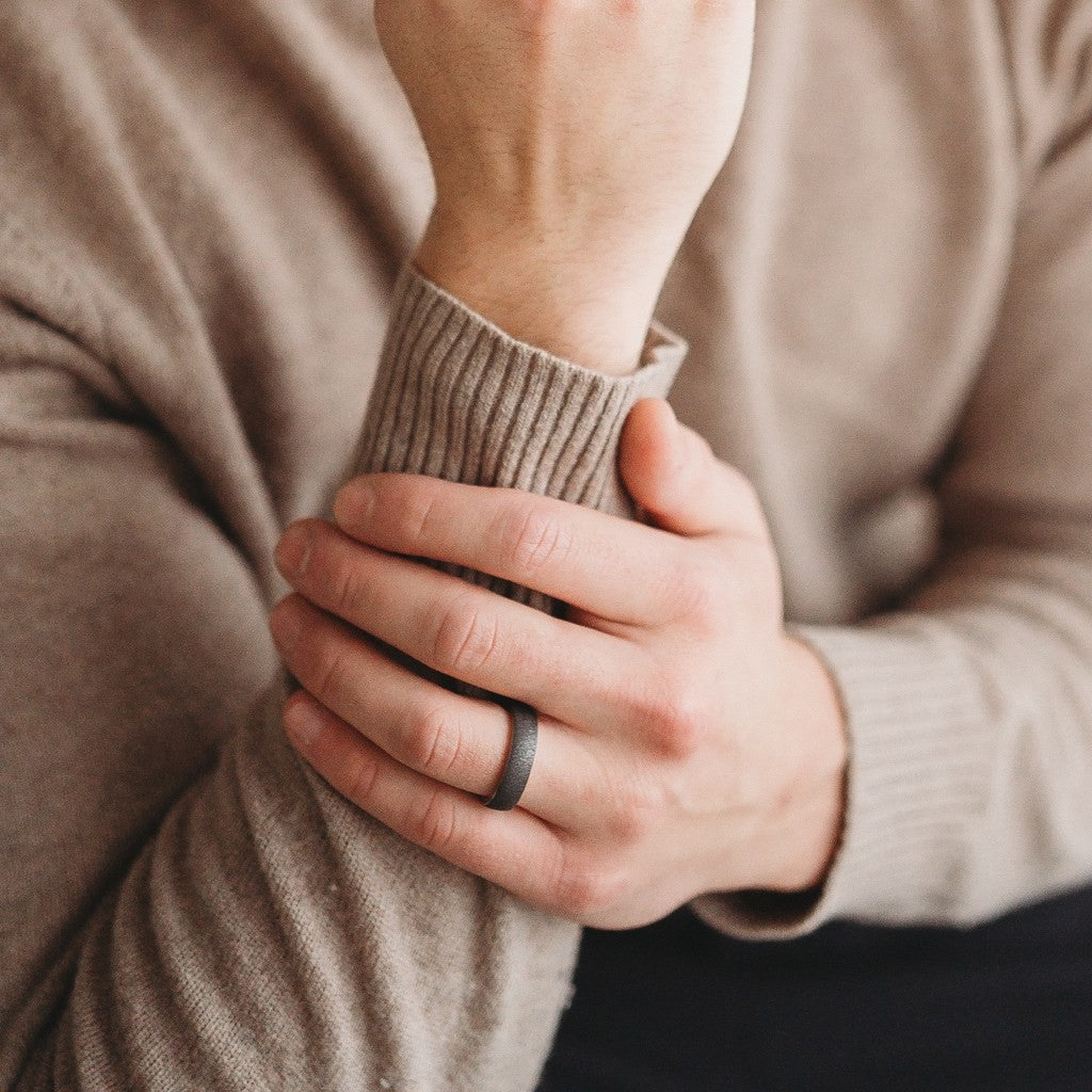 A stone ring is a strong union of two materials. The hard, deep dark stone-like surface of zirconium brings strength to the ring, while the warm glow of gold balances the overall timelessness. The two materials meet as separate but seamlessly joined. The stunning contrast highlights the character of both materials. Thoughtful and meaningful, the Stone ring is unisex and designed to stand the test of time and wear