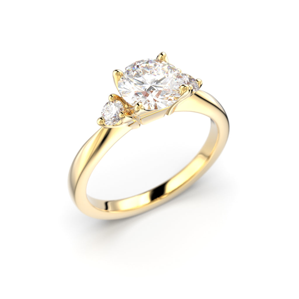En härlig och elegant Festive Megan diamantring, med tre briljantslipade gnistrande diamanter. Smal och stark kropp. Denna ring kan bäras ensam eller tillsammans med en annan ring. Kompatibel med Festive Jessica ring i synnerhet. Ringen finns tillgänglig med äkta naturliga diamanter eller labbskapade diamanter. I menyn för diamantkvalitet står det LAB MADE under laboratoriediamanter.