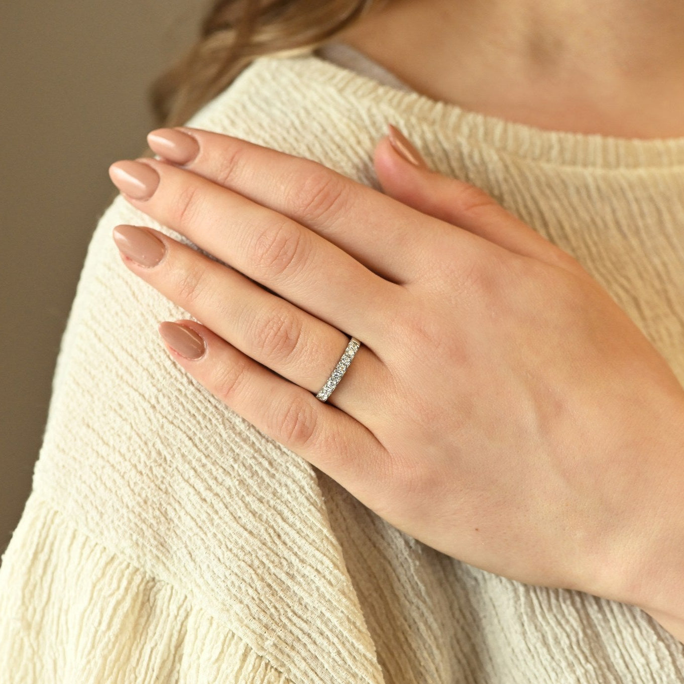 En fin Festive Juliette alliansring med åtta gnistrande diamanter. Lättrundad skena. Den här ringen kan användas ensam eller tillsammans med en annan ring. Kompatibel med Festive ringar som Jemina, Janette, Josefiina, Isabella, Amelie och Penelope. Denna ring är tillgänglig med naturliga diamanter eller labbgjorda diamanter. I Diamantkvalitet-menyn står det LAB MADE för laboratoriediamanter.